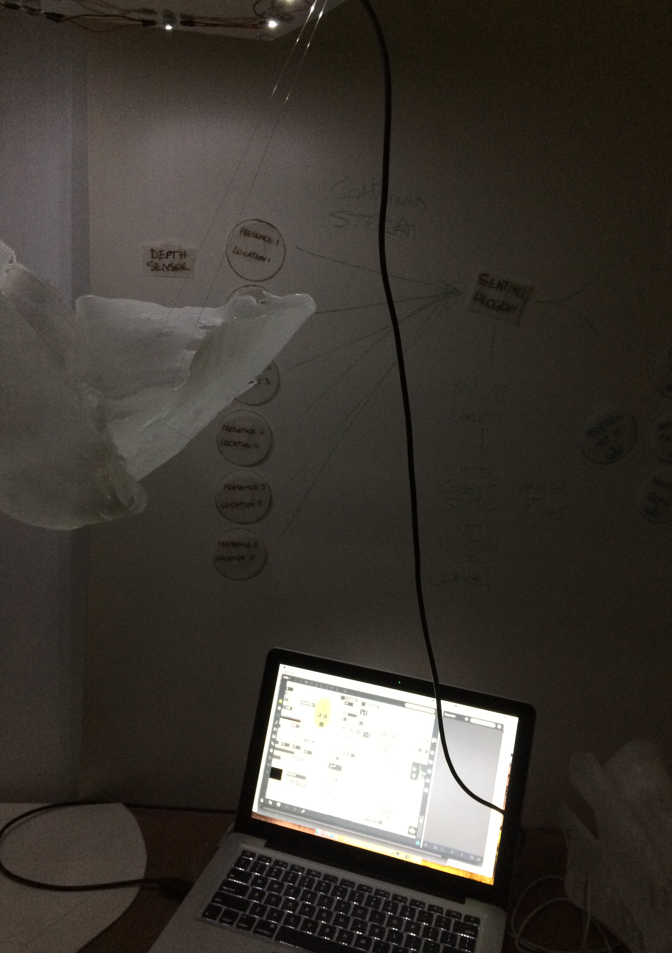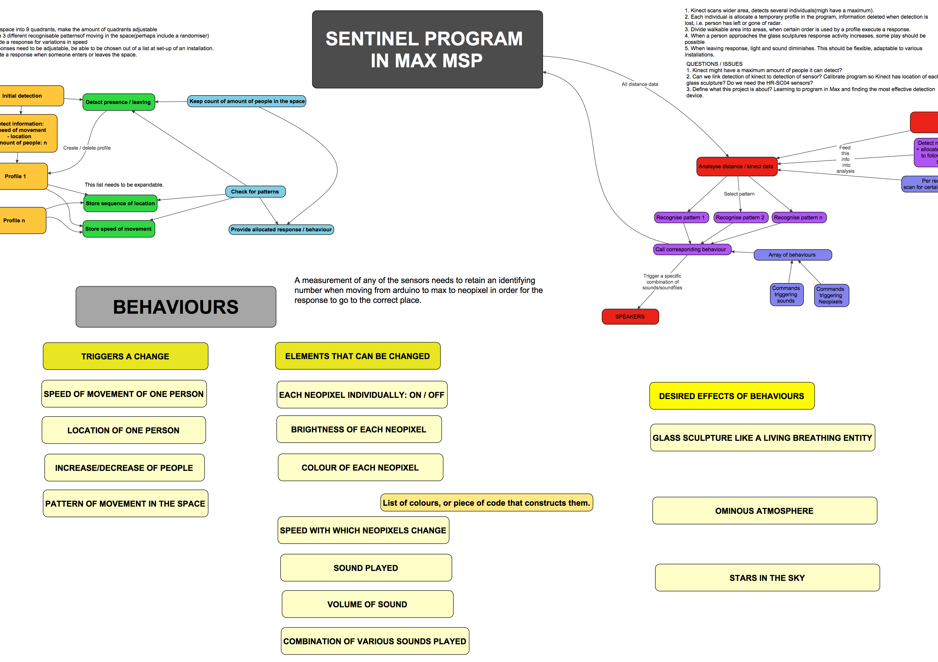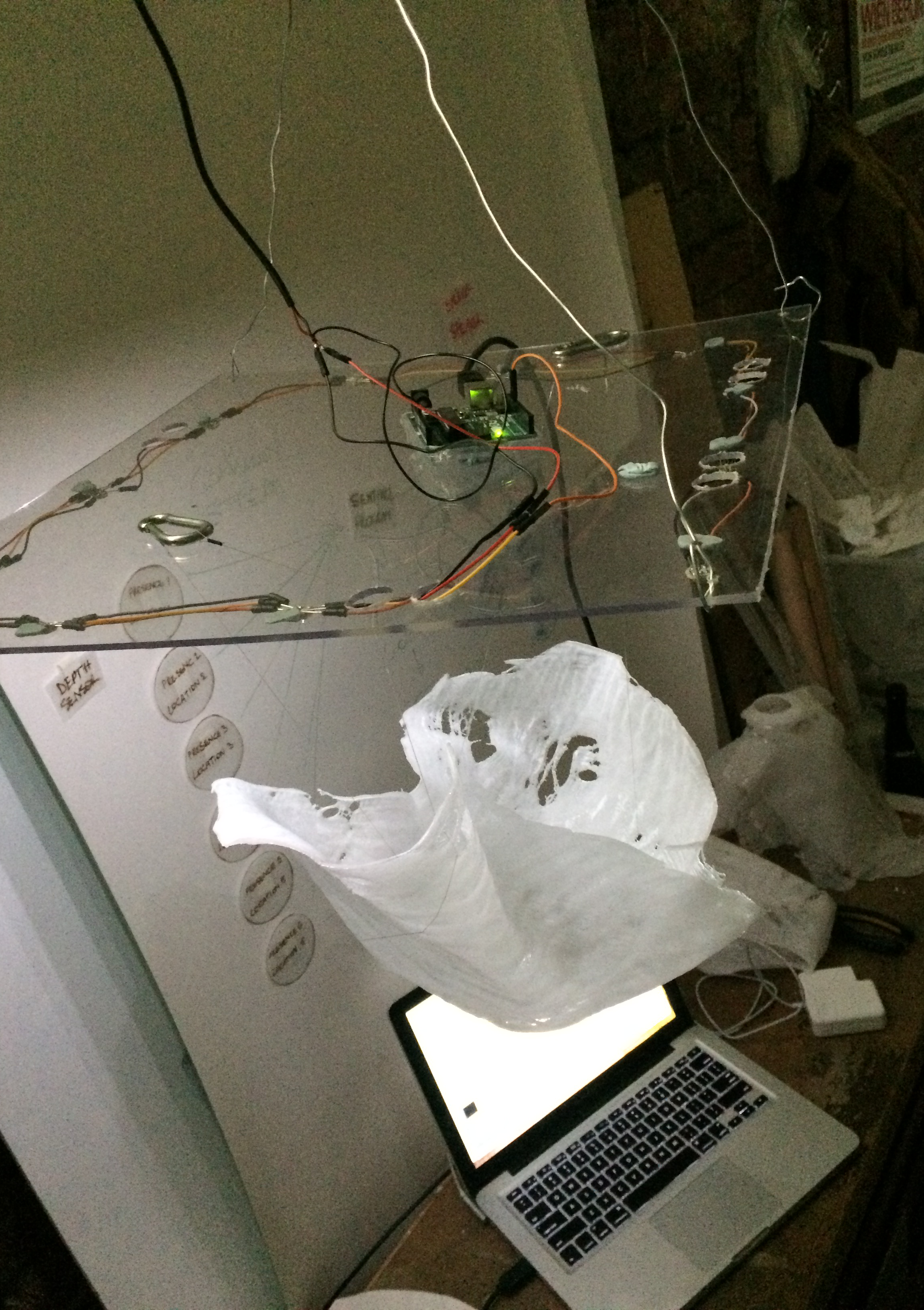 Research into the use of MaxMSP - a visual programming language for music and multimedia - sensors, LEDs, glass sculptures and laser cutting, to create a responsive environment that reacts to the presence and movements of its viewers. Funded by a-n The Artist Information Company.