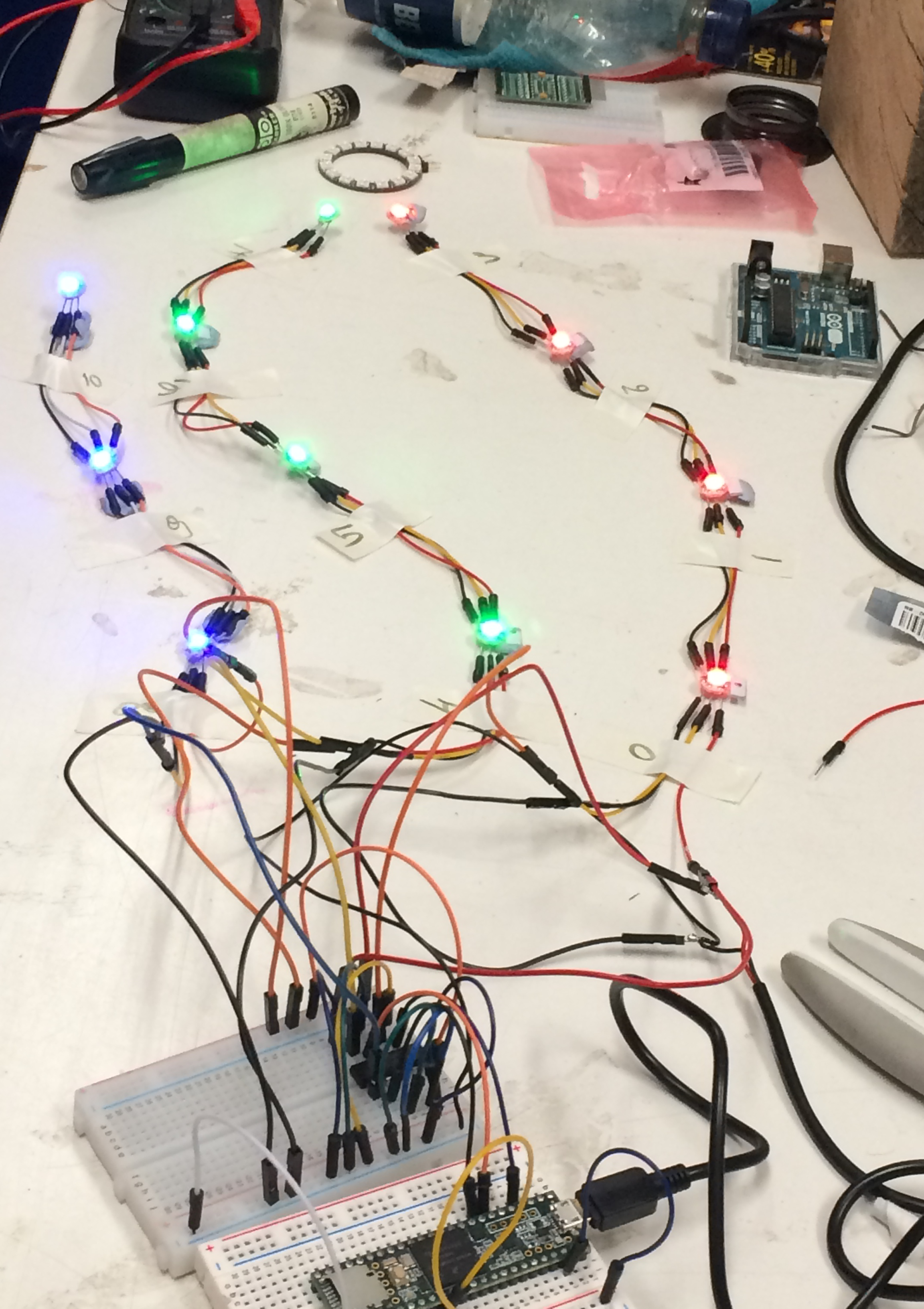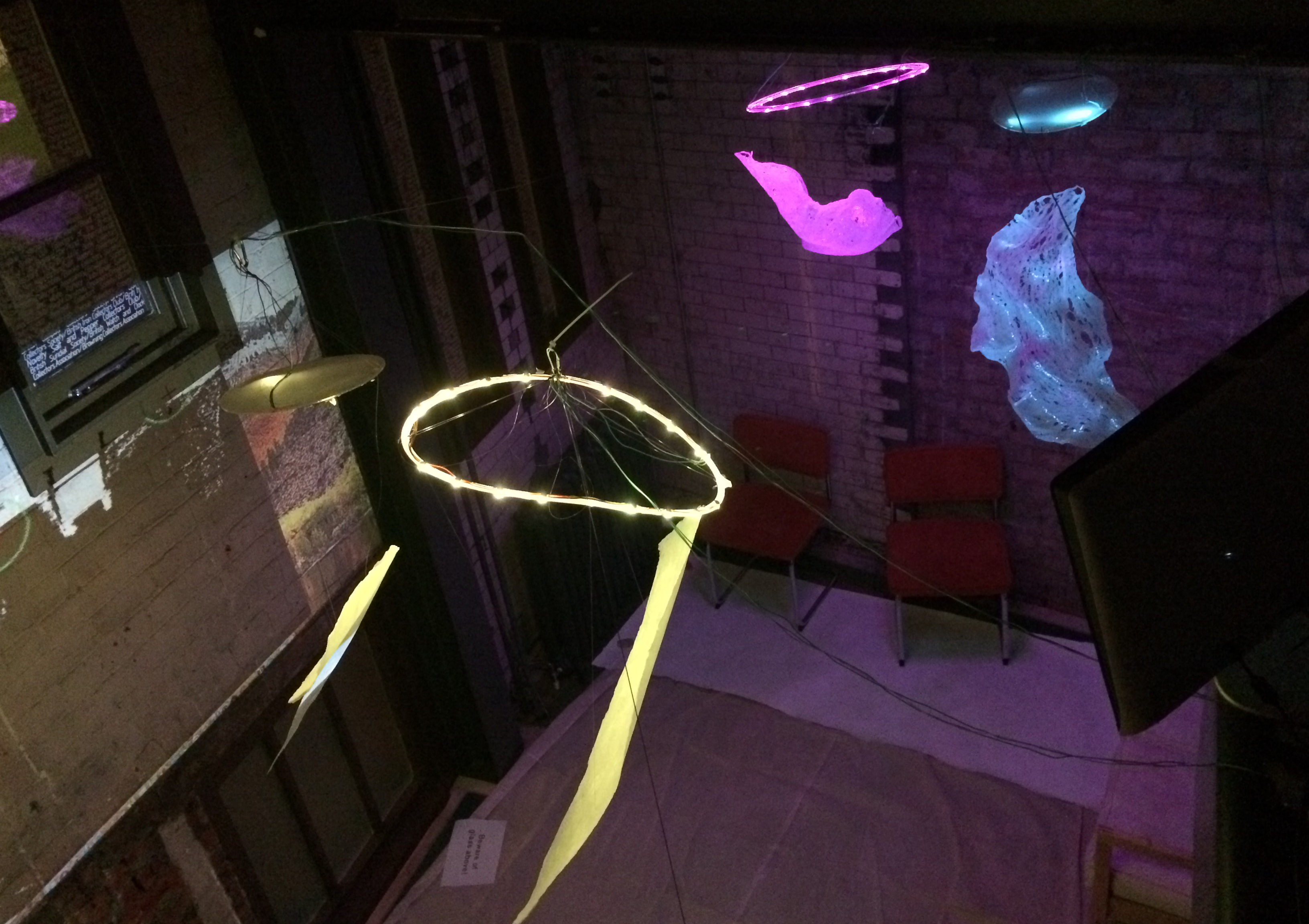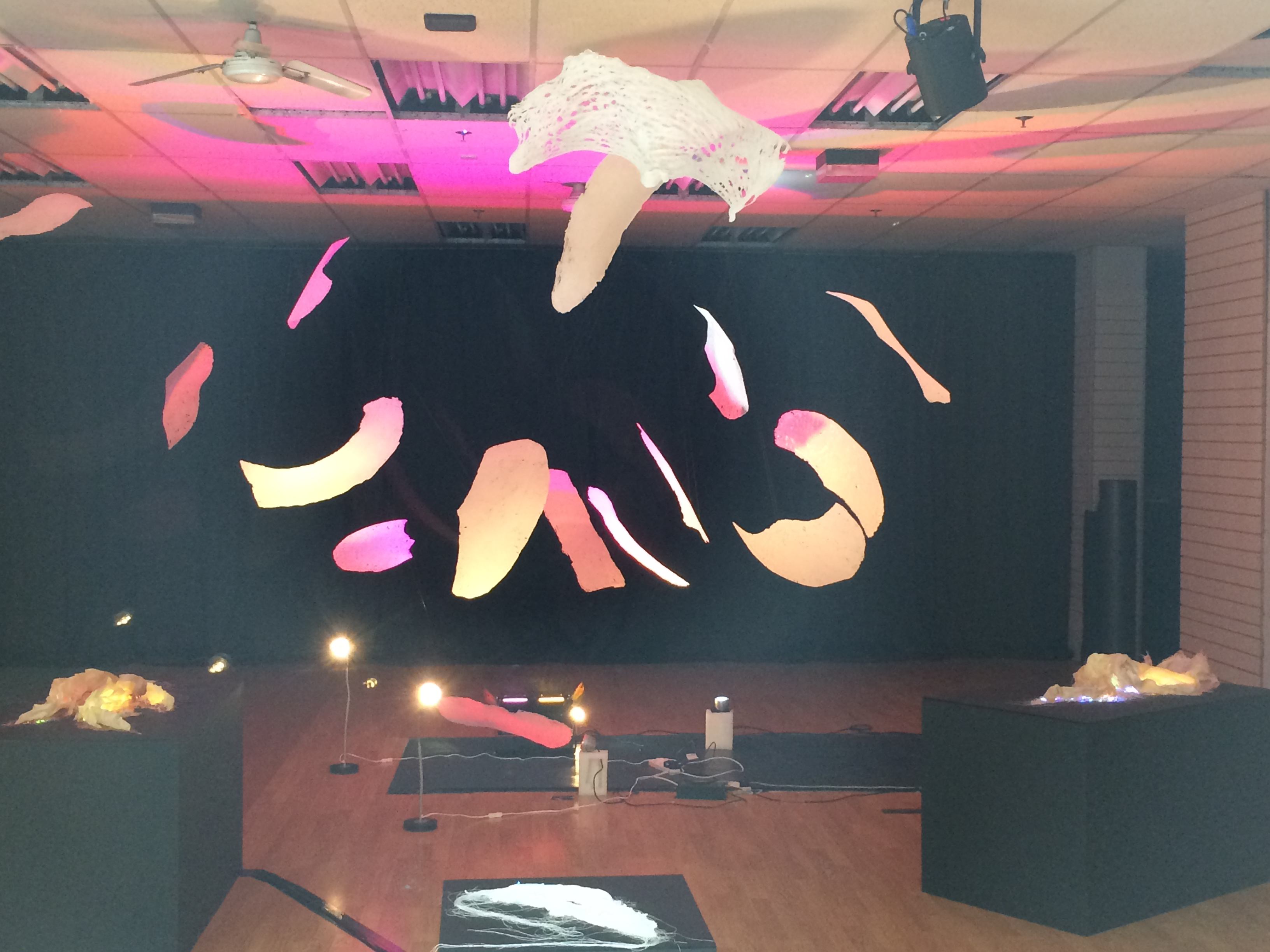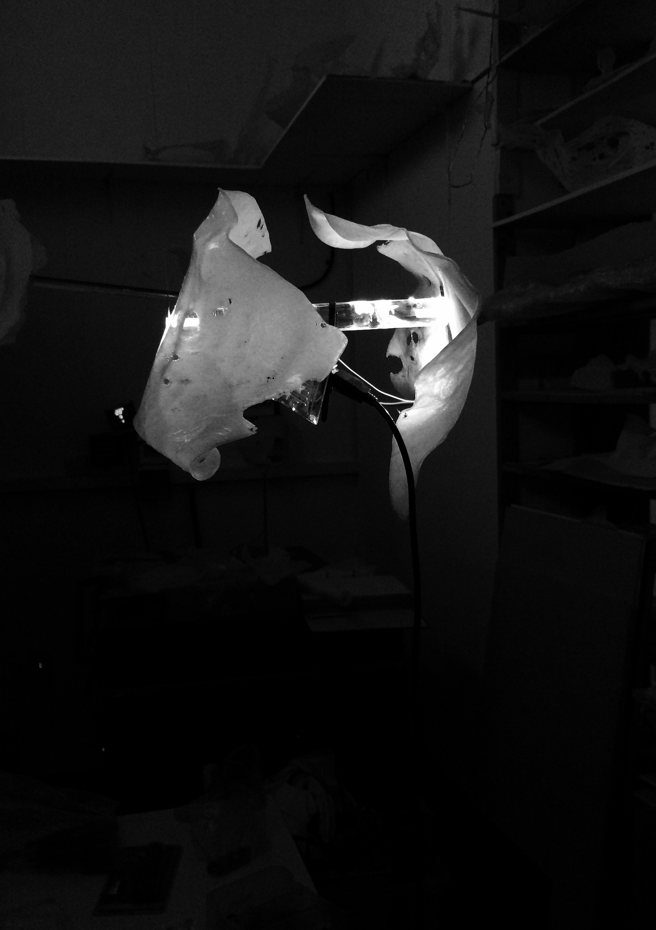 Research into the use of MaxMSP - a visual programming language for music and multimedia - sensors, LEDs, glass sculptures and laser cutting, to create a responsive environment that reacts to the presence and movements of its viewers. Funded by a-n The Artist Information Company.