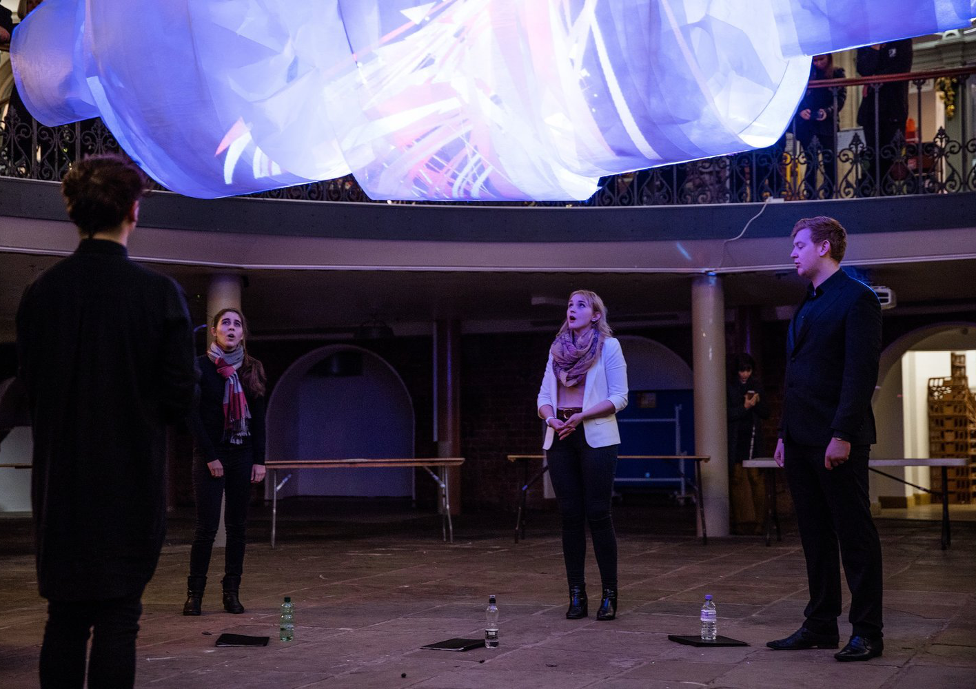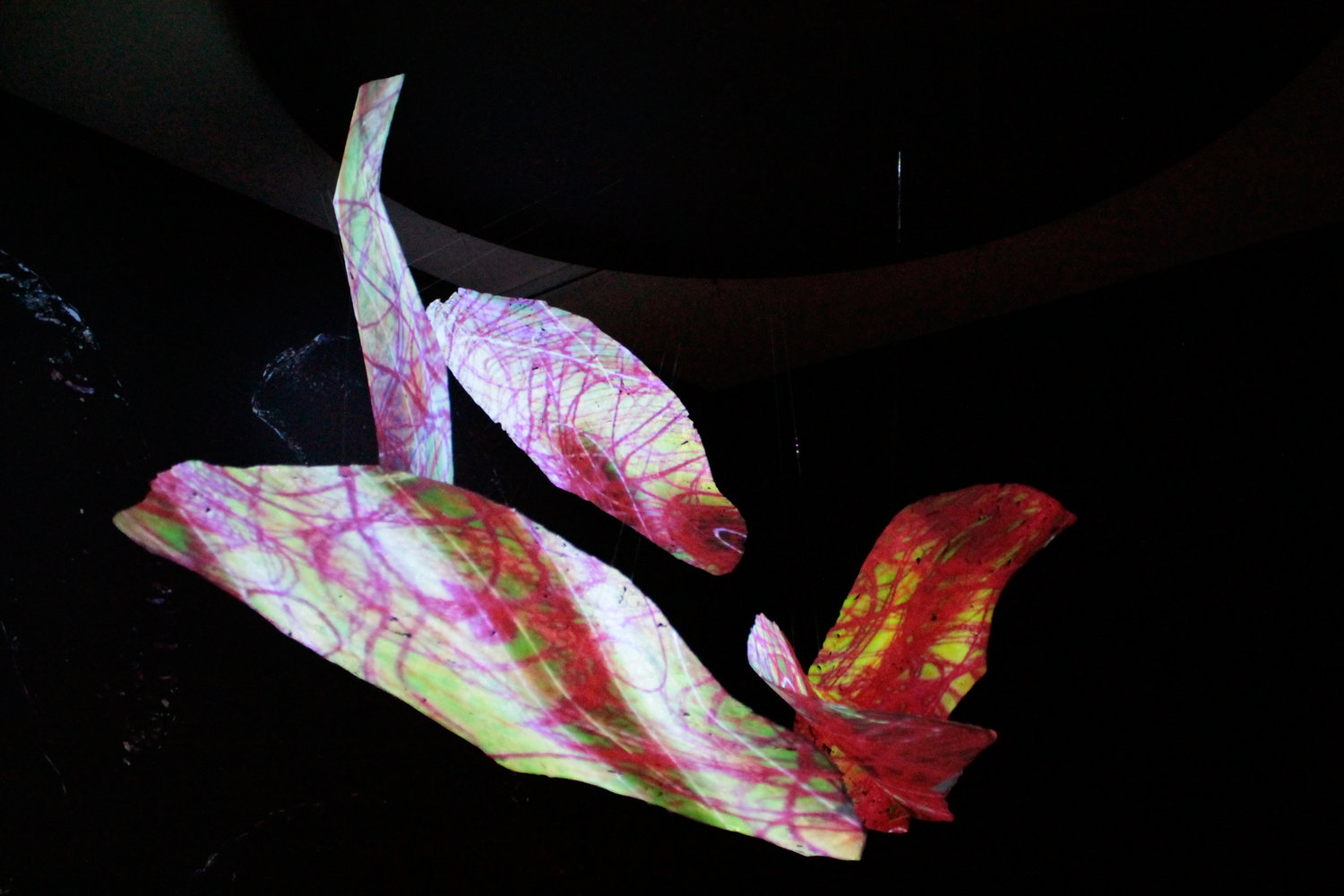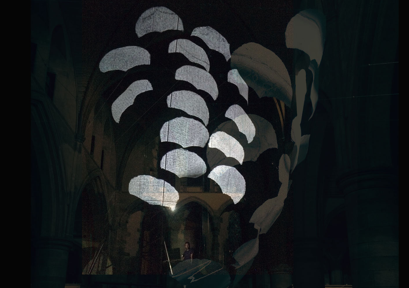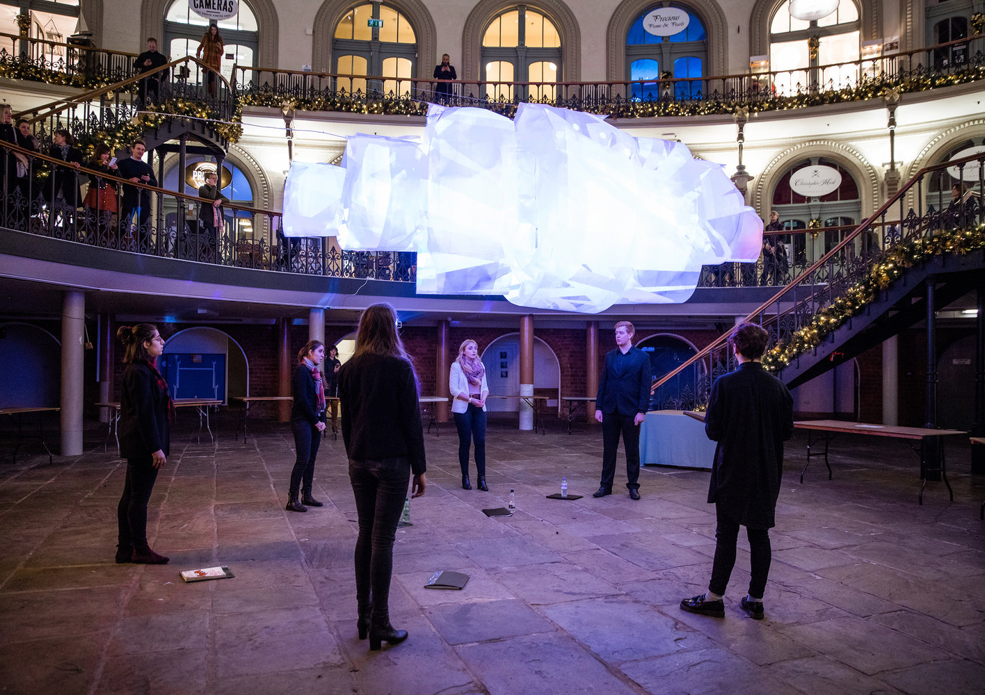 Central to the installation is its responsiveness to sound, which serves as both input and inspiration for the visual and spatial elements. As invited musicians and the public interact with the installation through sound, the cloud-like structure comes to life, pulsating and shifting in response to the auditory stimuli.