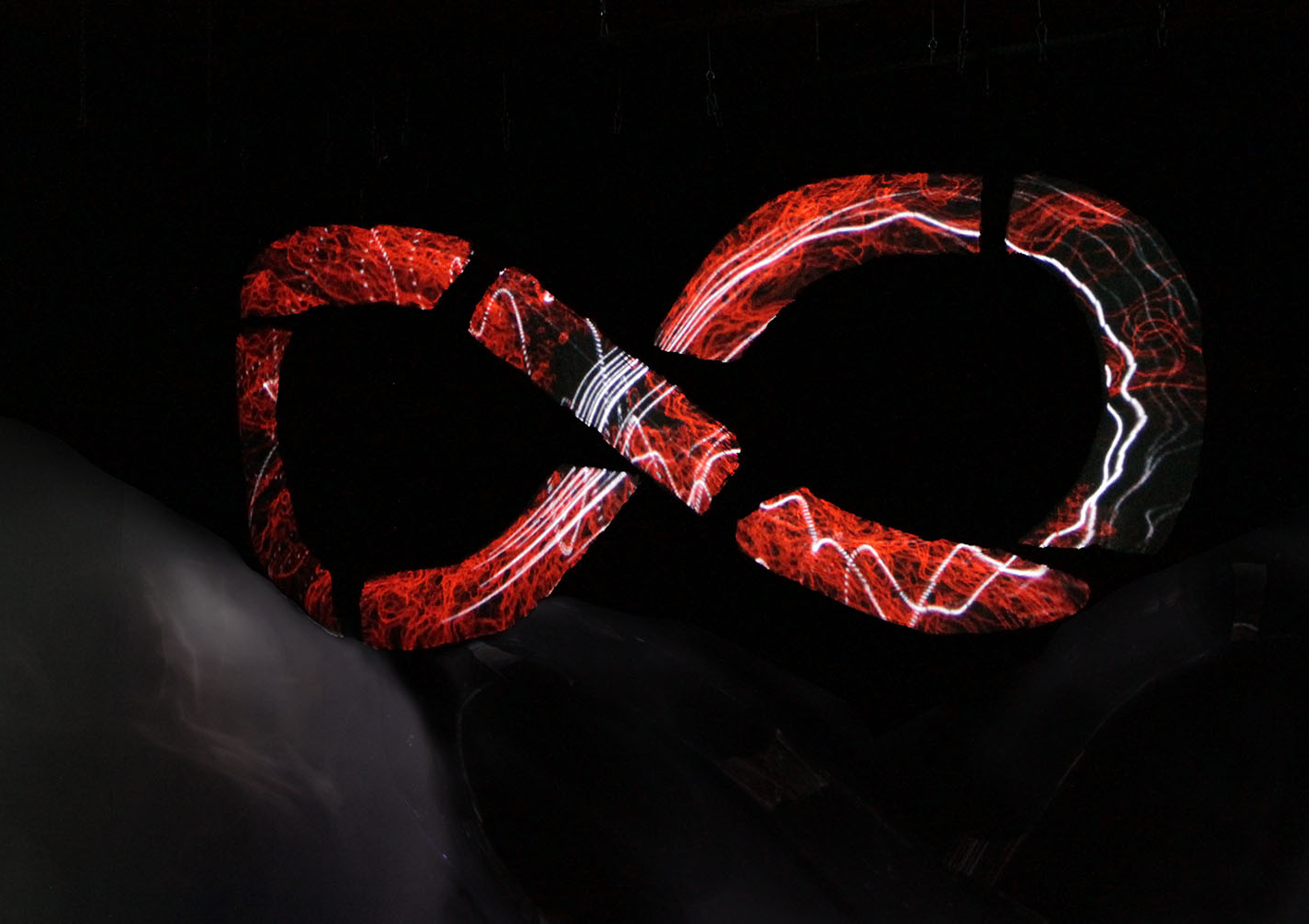 An interactive installation inspired by the lost expended energy of everyday movement. The public was invited to actively engage with the installation, an infinity symbol made from fused and suspended glass powder sculptures. The installation demonstrated the principles of movement, energy transfer and transformation. A the Glass Cyphers collaboration (G. Beyaert / P. Miller).